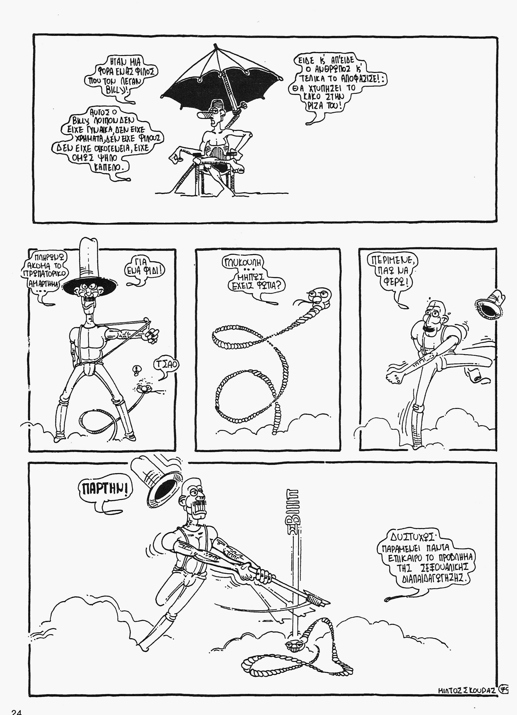 THE UNDERGROUND ADVENTURES OF MR MEDIATOR  page 2   1979  pen marker on paper  17 X 21 cm   KOLOUMPRA  Athens  9/1979