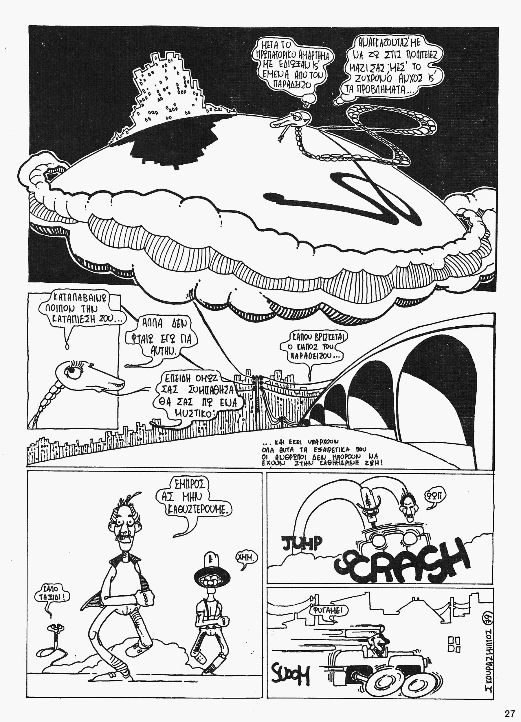 THE UNDERGROUND ADVENTURES OF MR MEDIATOR page 5 1979 pen marker on paper 17 X 21 cm KOLOUMPRA Athens 9/1979